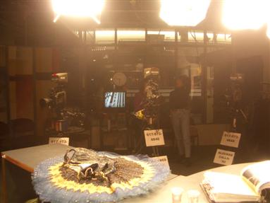 View from behind the desk, fifteen minutes to showtime, with Cinda Hill next to camera #2.